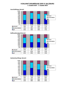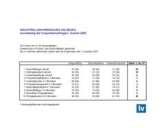 Im dritten Quartal 2025 sehen wir die Entwicklung der letzten drei Quartale bestätigt. Für 41% der befragten Salzburger Unternehmen verbleibt die Geschäftslage aktuell gleichbleibend - in sechs Monaten rechnet jedoch nur noch ein Fünftel der Unternehmen mit einer besseren Geschäftslage – zu 50 % in Q2/25. Die Auftragsbücher sind ähnlich gefüllt wie im Vorquartal – so der Tenor der IV-Konjunkturumfrage zum Quartal Q3/25.